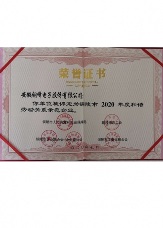銅陵市和諧勞動關(guān)系示范企業(yè)
