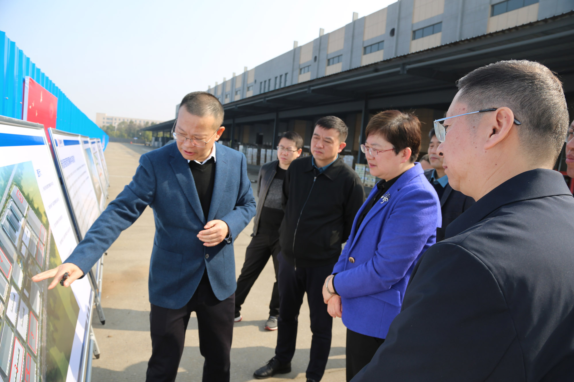 在公司重點(diǎn)項目建設(shè)現(xiàn)場,昌紅梅認(rèn)真聽取黃明強(qiáng)關(guān)于企業(yè)經(jīng)營和項目建設(shè)等情況的匯報,詳細(xì)觀看公司2021年以來謀劃實(shí)施的六個重點(diǎn)項目介紹展板。