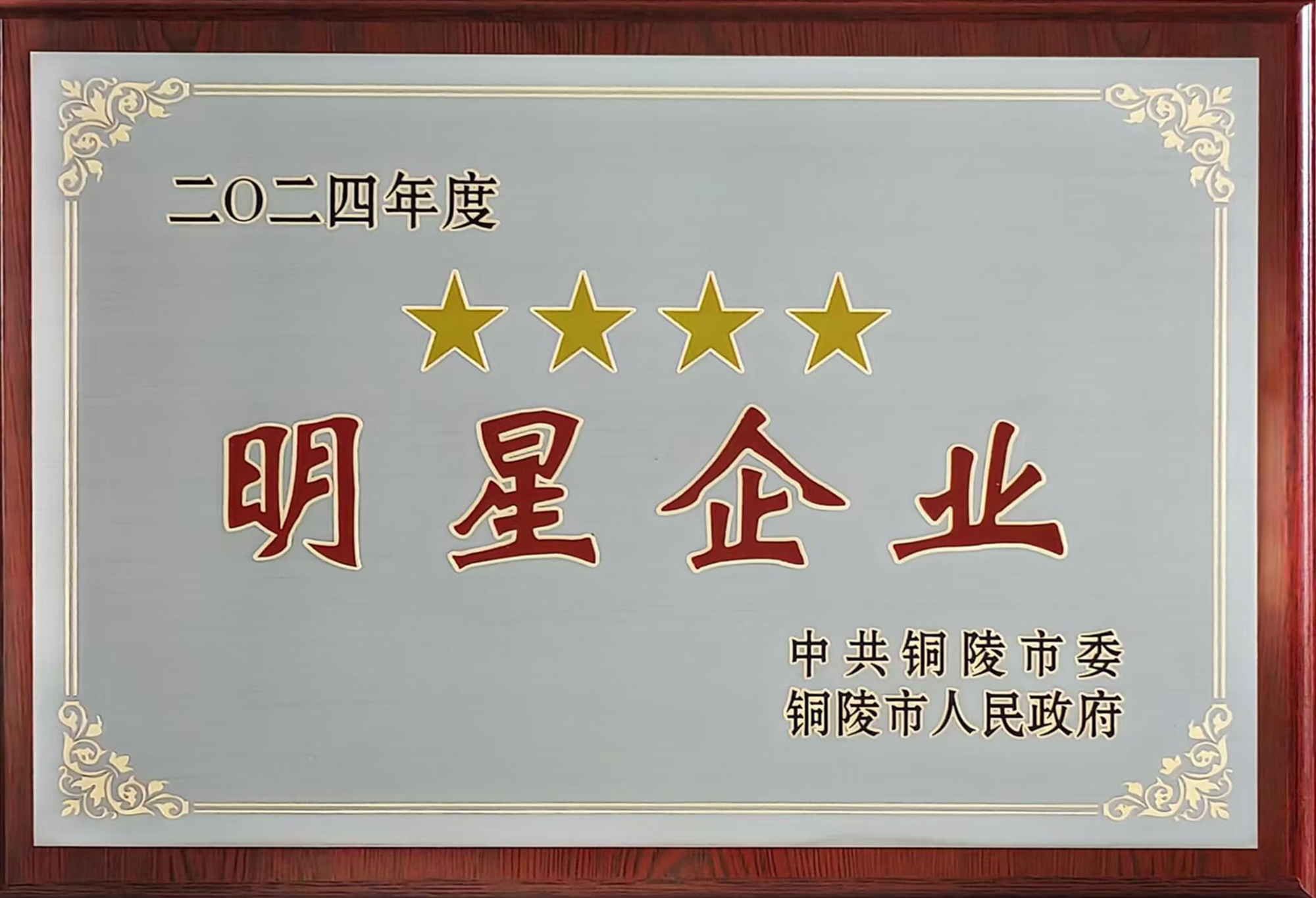 2月6日上午,銅陵市在市行政會議中心隆重召開“新春第一會”——全市重大項目提升年暨營商環(huán)境深化年動員大會。會上表彰了2024年度全市突出貢獻單位、星級企業(yè)(其中工業(yè)類五星企業(yè)6家、四星企業(yè)4家、三星企業(yè)14家)、單項貢獻獎(其中稅收增長貢獻獎8家)等先進集體和先進個人。公司首次獲評“工業(yè)四星企業(yè)”,并獲“稅收增長貢獻獎”,這是公司繼多次獲評“工業(yè)三星企業(yè)”后的又一新突破。公司總經(jīng)理鮑俊華代表公司出席領(lǐng)獎并在主席臺就坐。