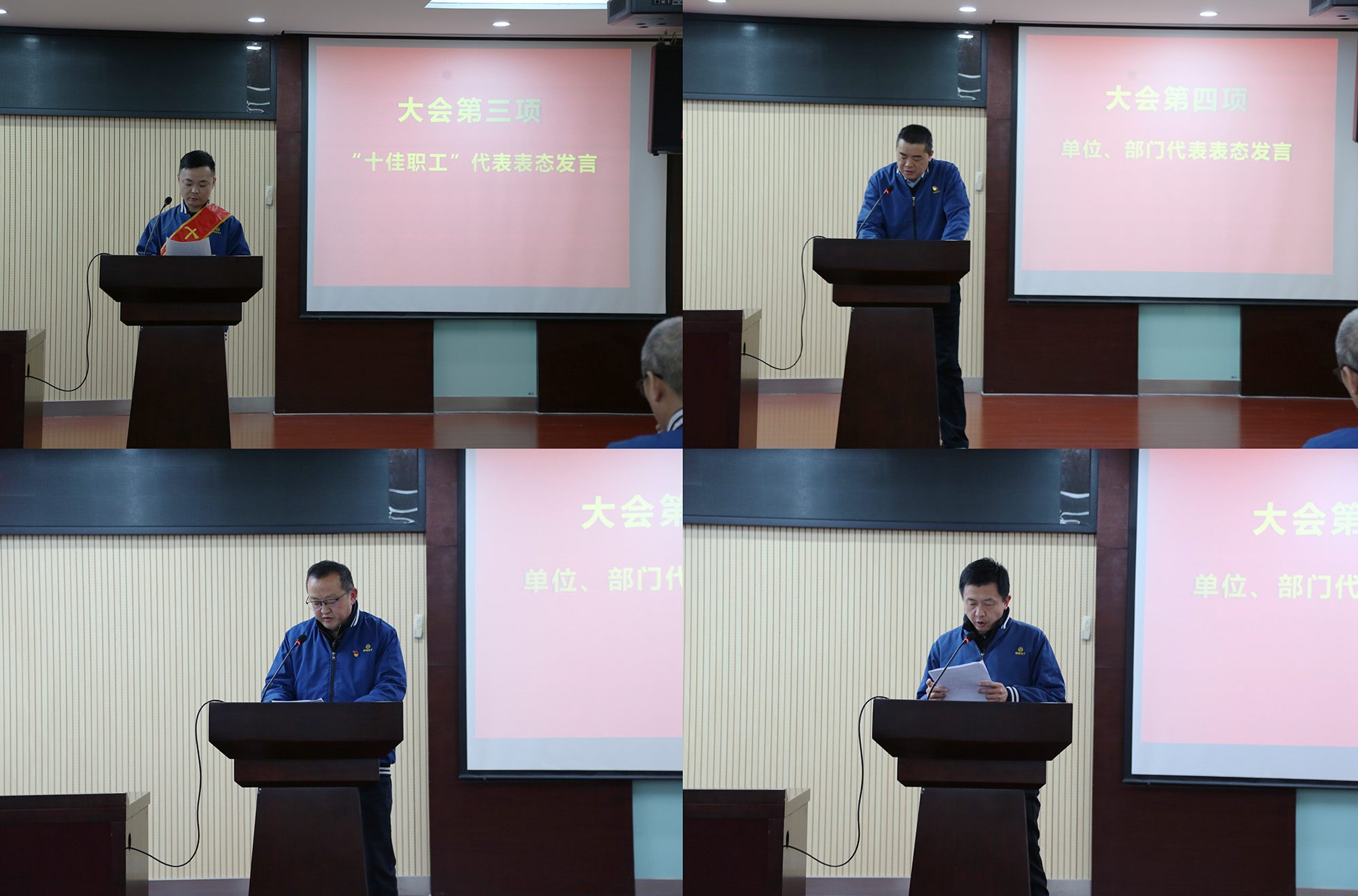 與會領(lǐng)導為受表彰的2025年度公司“十佳職工”頒發(fā)榮譽證書及獎金?!笆崖毠ぁ薄⒔?jīng)營單位和職能部門代表分別作表態(tài)發(fā)言。